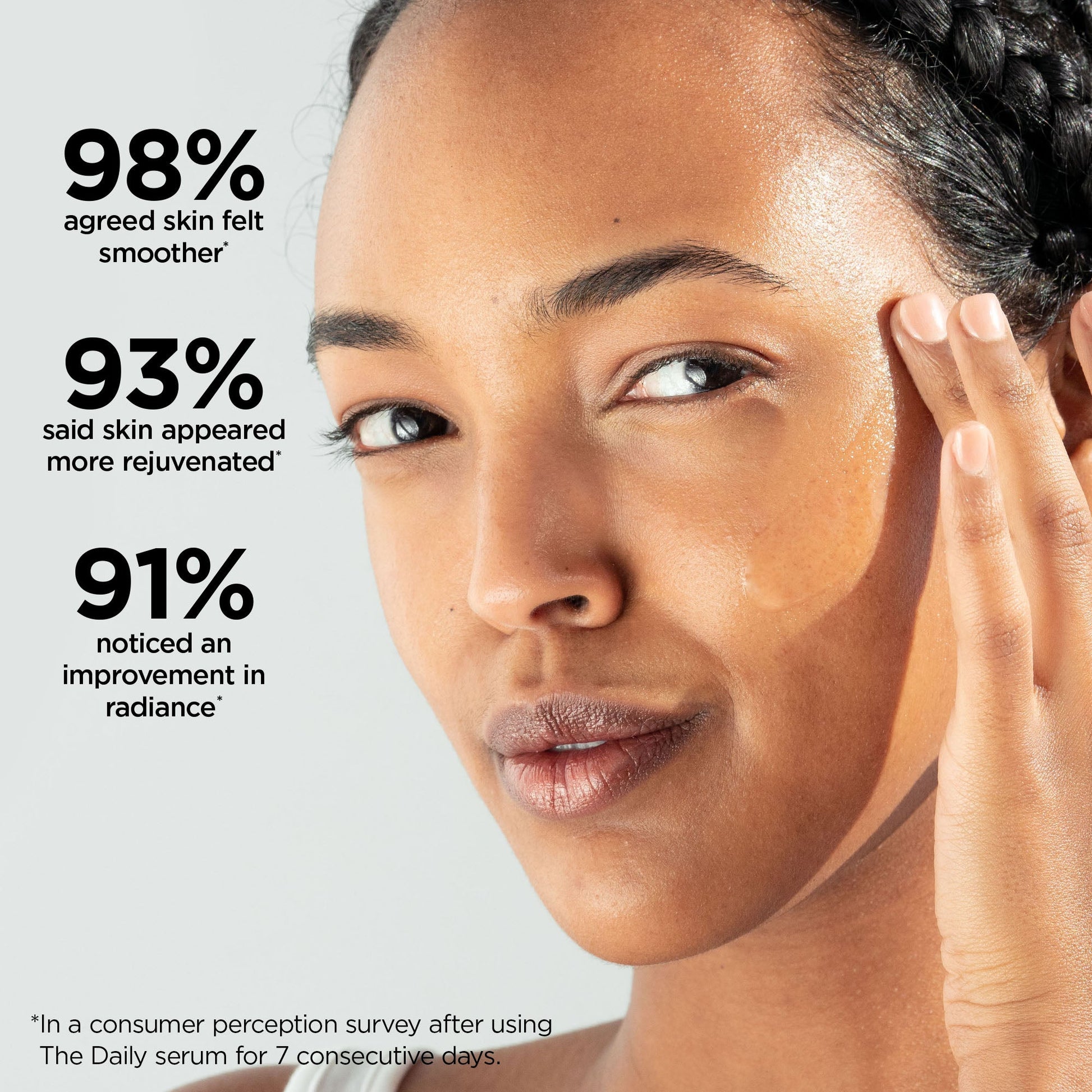 A daily skincare “smoothie” powered by a complex of 8 glow-inducing vitamins and Magnesium Ascorbyl Phosphate (MAP), a powerful, acid-free, non-irritating form of vitamin C that delivers brightening, skin-tone evening benefits without the harsh irritation. This gentle, yet potent serum visibly fades discoloration, brightens skin tone, smooths the appearance of uneven texture and repels free radicals with zero downtime.