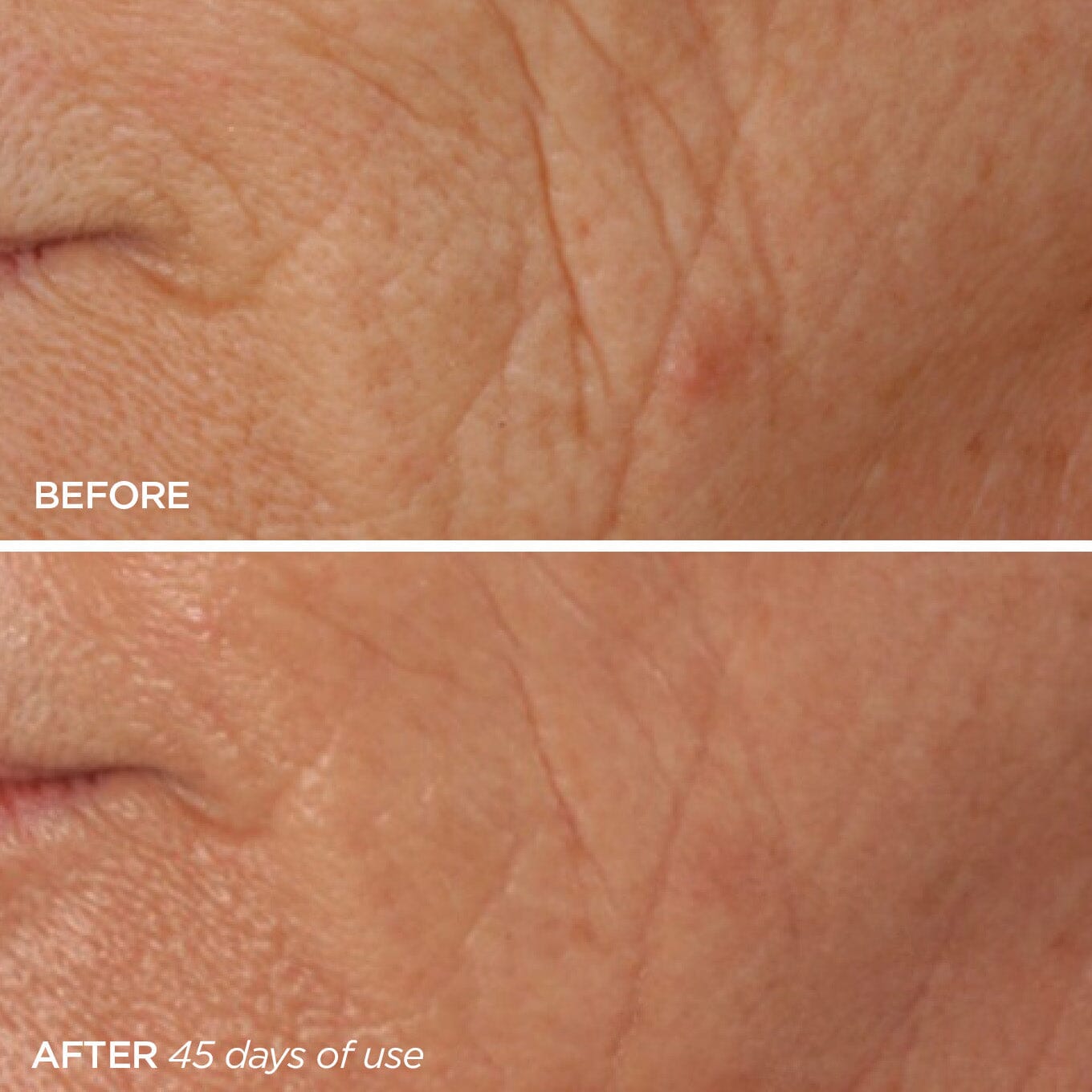 Our award-winning R45® The Reversal anti-aging retinol night cream utilizes a patented booster system that is so powerful, you only need to use it twice a year. In just 45 days, this 3-phase retinol treatment for aging is clinically proven to repair all 4 benchmarks of aging – discoloration, wrinkles, enlarged pores and uneven texture. Our proprietary retinol complex, TriGLO™, mimics the skin-smoothing effects of clinical retinol cream for wrinkles without the harsh side effects. Finally, a retinol every skin type can use.